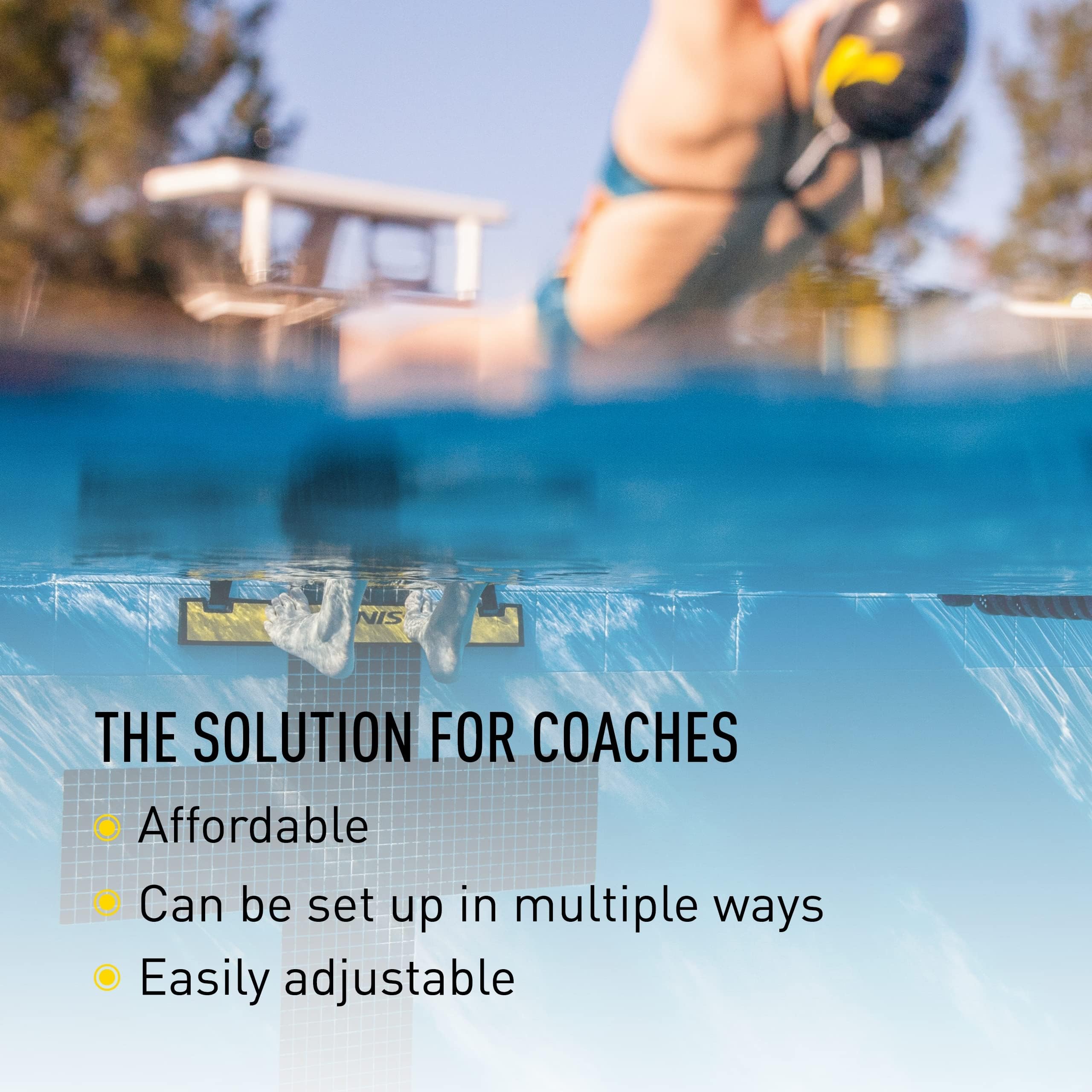 - Customizable Swimming Pool Accessory: Swimmers can easily adjust the wedge height through five different settings to optimize their backstroke start; made from Thermoplastic Rubber