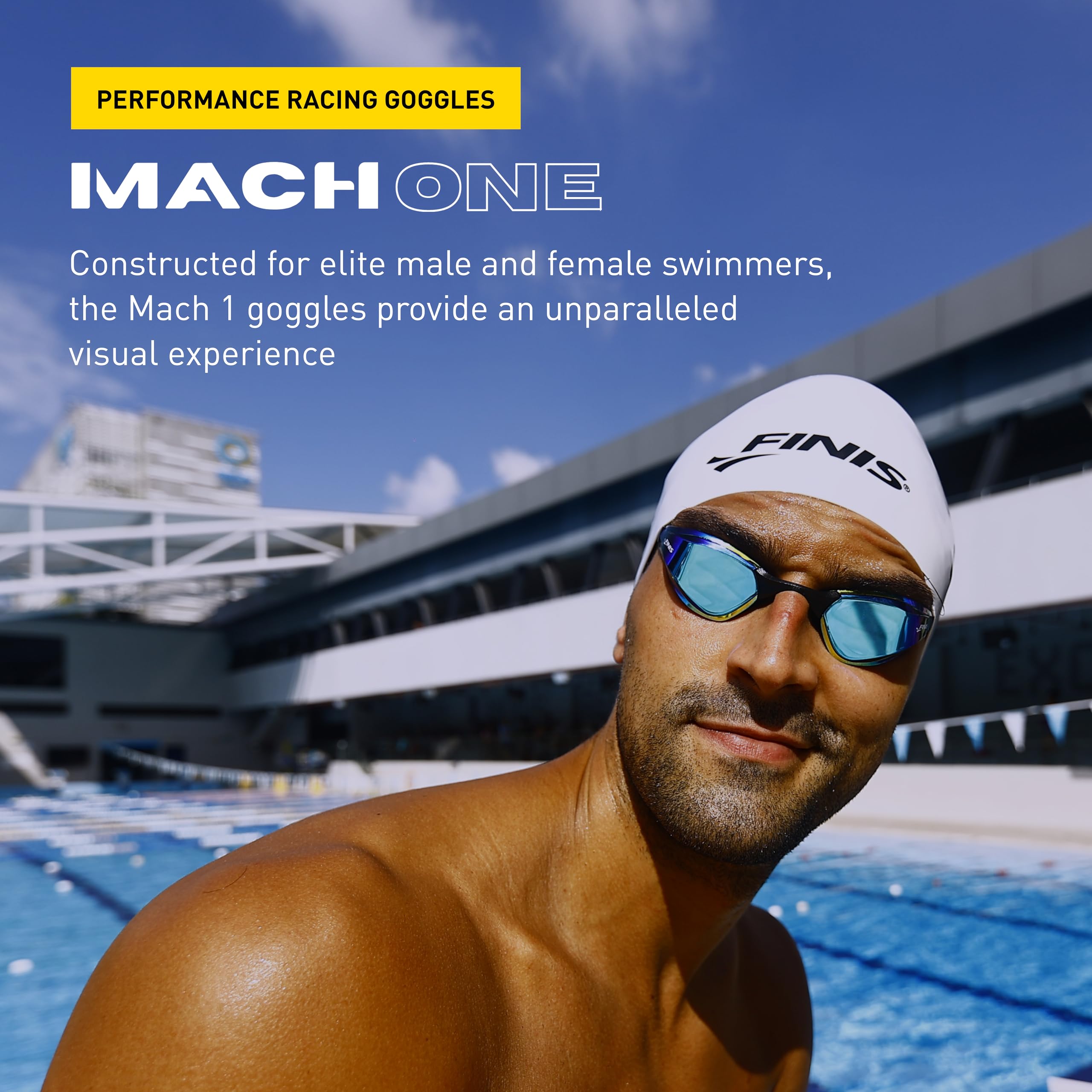 - IN THE BOX: Includes a pair of Mach 1 goggles, five interchangeable nose pieces, white seamless silicone swim cap, and goggle carrying bag