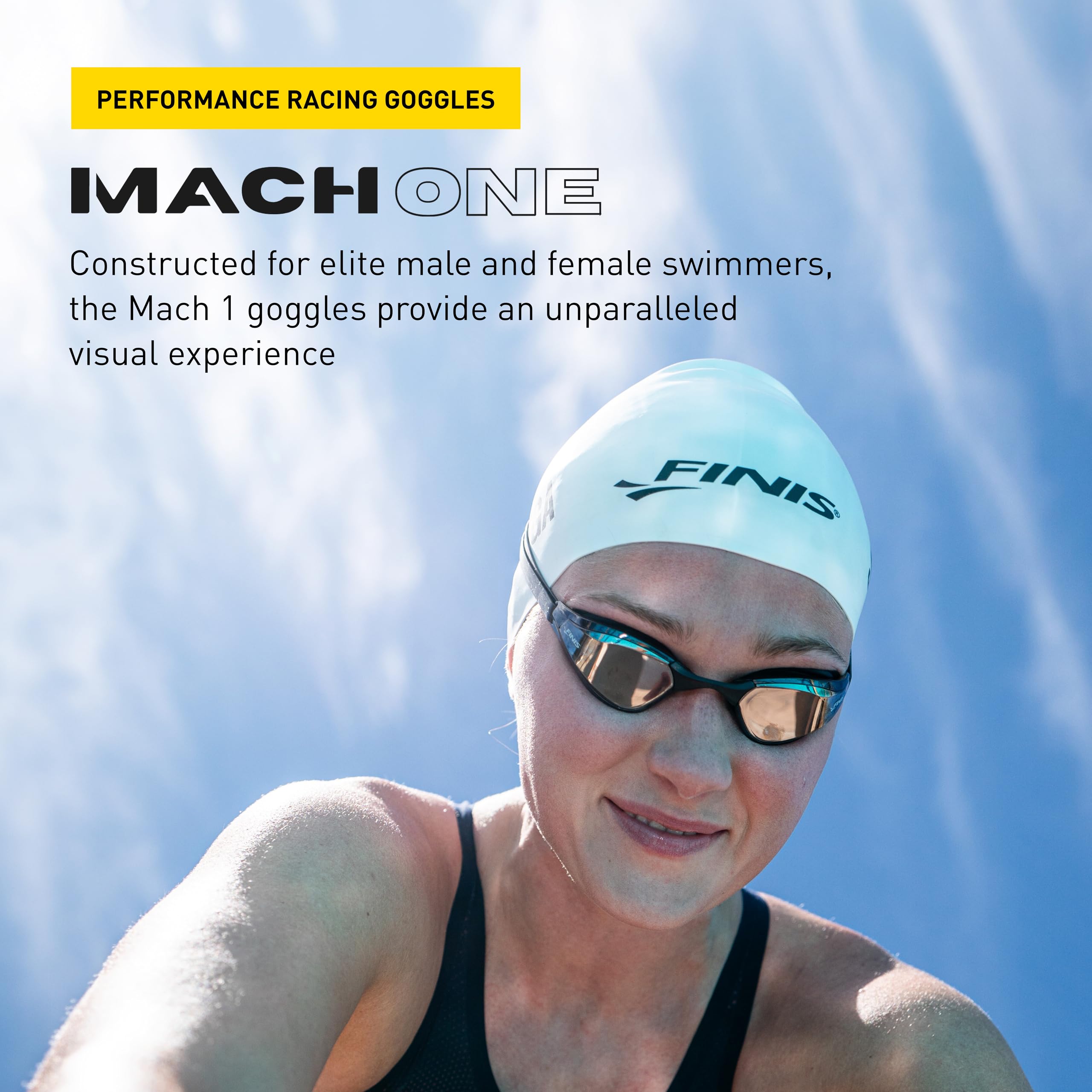 - IN THE BOX: Includes a pair of Mach 1 goggles, five interchangeable nose pieces, white seamless silicone swim cap, and goggle carrying bag