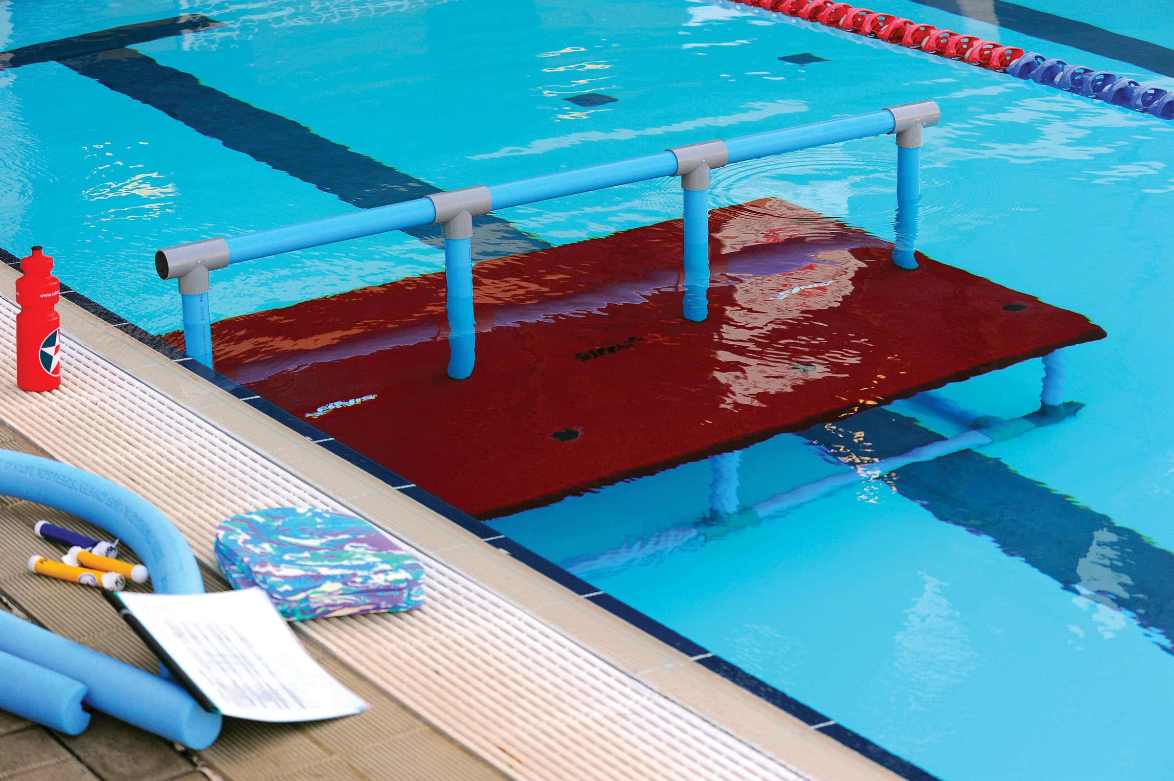 - Versatile Swim Instruction Platform: Pool lessons platform features removable railings and an interlocking design for customizable setups; connect multiple platforms to create larger platform